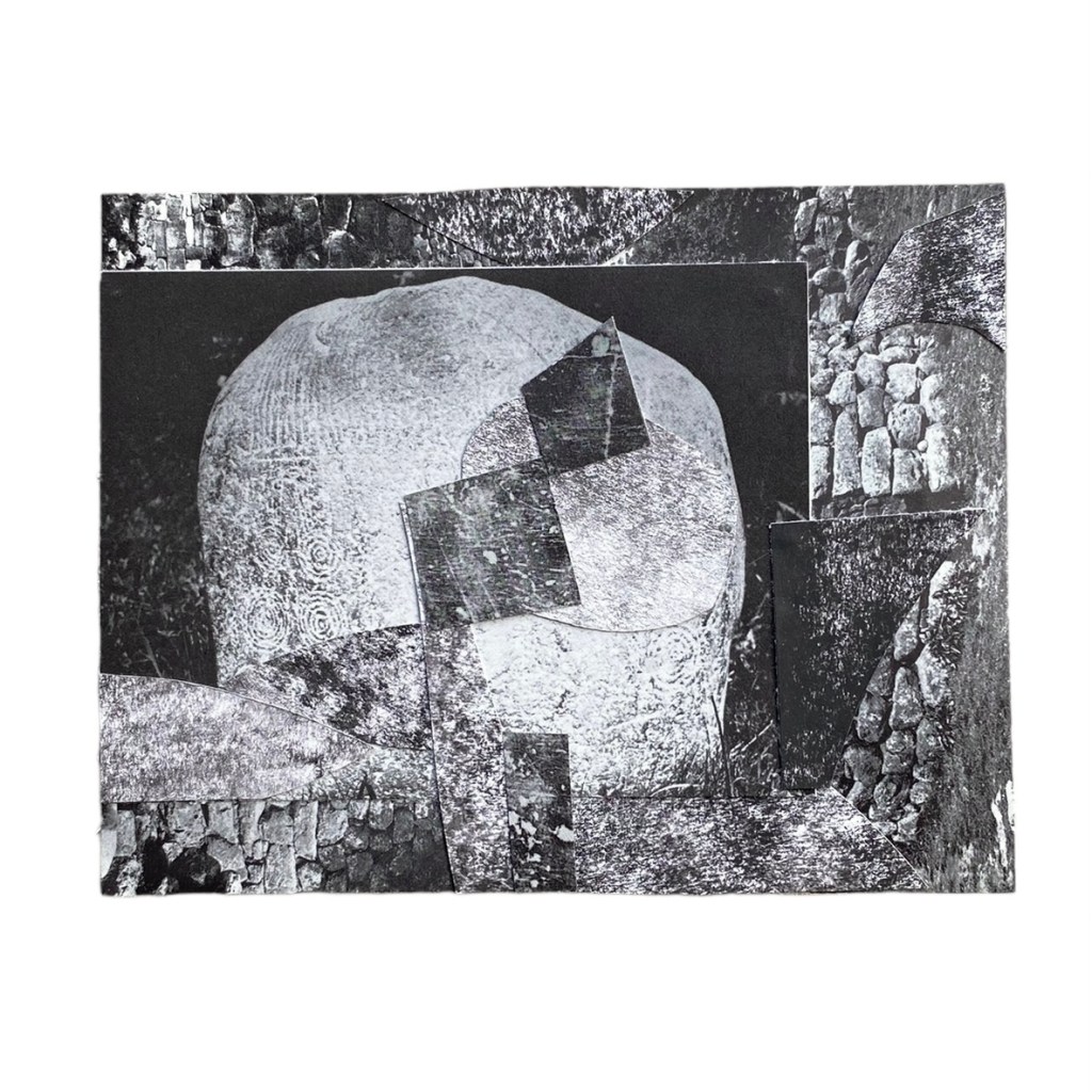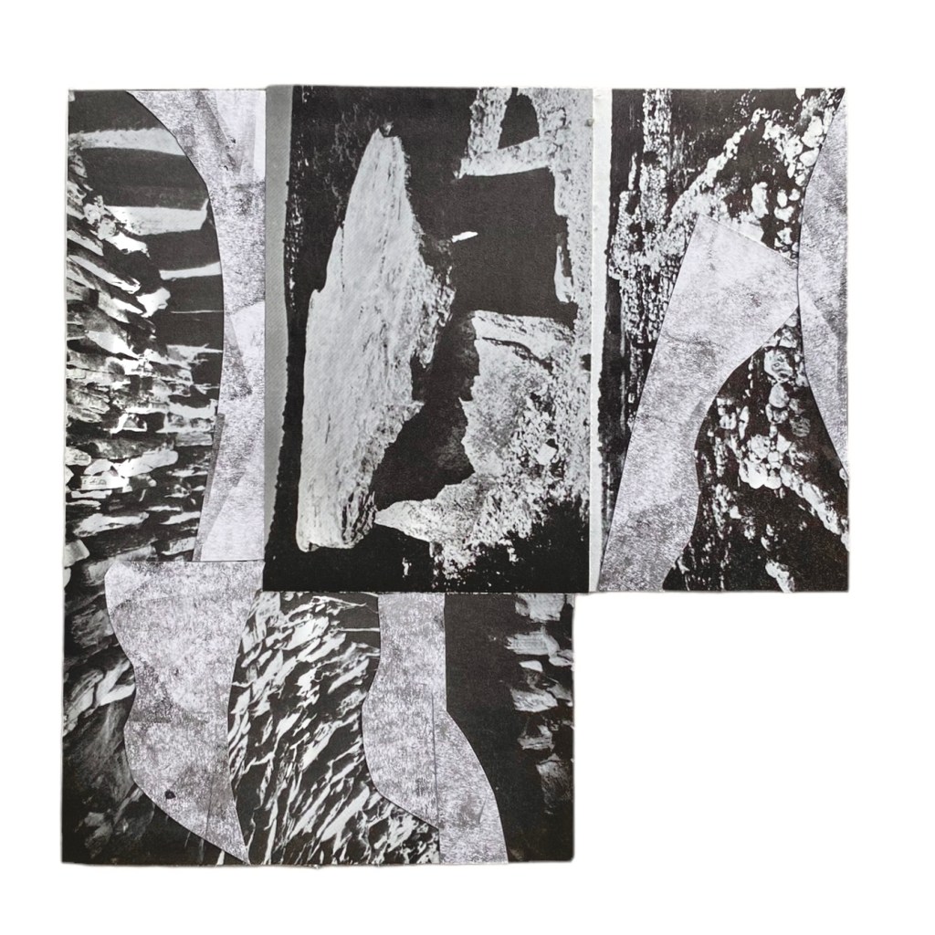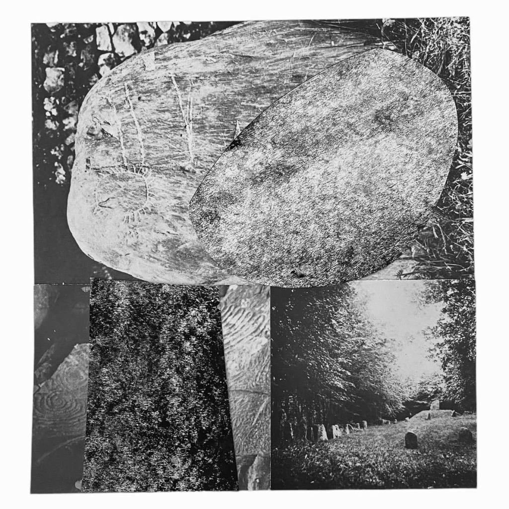 analogue collage sequence exploring prehistoric heritage, devotion and automatism. 2024